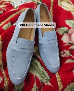 Zapatos personalizados hechos a mano de gamuza azul claro calidad premium a medida para hombre