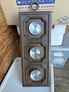 Estación meteorológica de pared Springfield vintage con medidores meteorológicos, grano de madera sintética