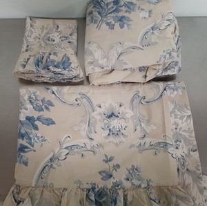 Ralph Lauren Elsa Azul Par de Cortinas de Bolsillo Varilla Algodón Forrado Rosas Azules y Blancas