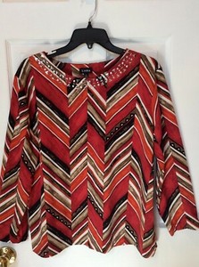 Links Women's Multicolored Geometric Top with Embellishments 3/4 Sleeves Large