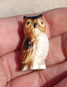 Estatuilla miniatura vintage de búho de porcelana Hagen Renaker