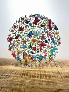 Escultura de aluminio La placa de mariposa, pintada a mano por Emanuel