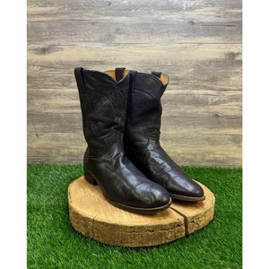 Boulet Hombres - Talla 9.5E - Botas de Vaquero de Cuero Ciervo Negro Estilo 9502