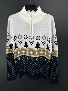 Suéter Threadbare Mujer Pequeño 1/4 Cremallera Fair Isle Holiday Trees Marfil Multi