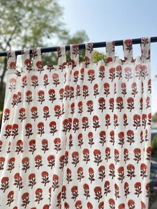 Cortinas indias hechas a mano con estampado floral de bloques de 2 paneles cortinas de ventana de algodón