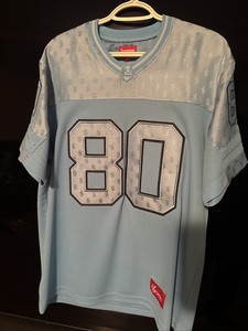 Camiseta deportiva de fútbol americano SS18 Supreme con monograma azul Carolina dólar mediano $