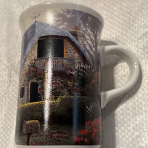 Taza iluminadora Thomas Kinkade Lila Cottage 2004 taza de café de té coleccionable