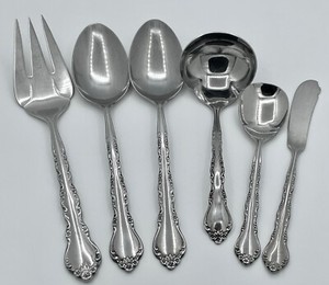 6 PIEZAS ONEIDA ACERO INOXIDABLE FANTASÍA ROSA TENEDOR CAZUELA PASTEL SERVIDOR MANTEQUILLA AZÚCAR CUCHARÓN 42,94 EUR