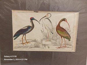 Antiguo estampado en acuarela de aves exóticas. Precintado
