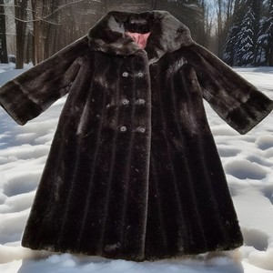 ✅Lujoso abrigo de piel de visón negro de longitud completa forrado con bolsillos para mujer grande de moda