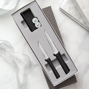 JUEGO DE REGALO DE AFILADOR RADA CUTLERY G236 PARING PLUS MANGO NEGRO HECHO EN EE. UU.
