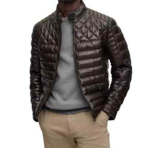 Chaqueta de cuero acolchada para hombre calce ajustado elegante abrigo de cuero de piel de cordero BIKER 114,11 EUR