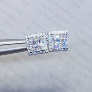 Pendiente Princess Moissanite Vintage Halo Push Back 1.70Ctw Chapado en Oro Blanco 14k 143,79 EUR173,25 EUR