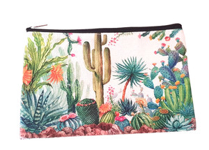 Bolsa pequeña bolsa de cosméticos lona lino colorido + cactus 23 x 15 cm