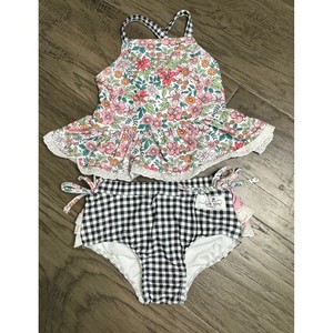 Love & Grow Clothing Co 2T Conjunto de traje de baño floral de guinga para niñas pequeñas