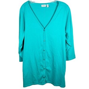Logo by Lori Goldstein Mujer’s Cárdigan Talla 1X Botón Bolsillos Azul