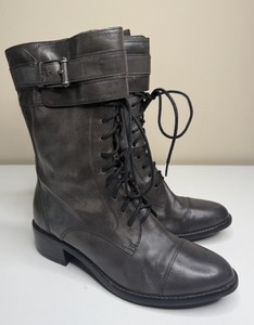 Bota de Combate Cole Haan Air Joey para Mujer 8B Gris Oscuro Cuero Cremallera Lateral Bota Corta