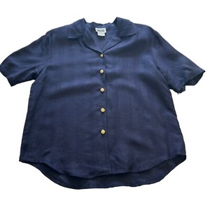 Blazer Top Vintage Leslie Fay Lino Azul Manga Corta Botones Dorados Nuevo con Etiquetas Talla 16