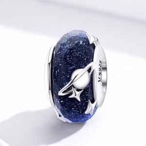 Plata de Ley 925 Azul Brillante Planeta y Galaxia Murano Cristal Cuentas Dije