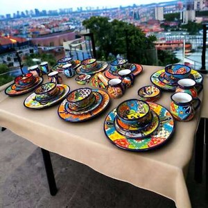Juego de vajilla Talavera | Vajilla mexicana floral vibrante de 26 piezas