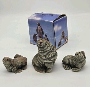 Conjunto de 3 estatuillas familiares vintage de sellos lindos miniatura decoración