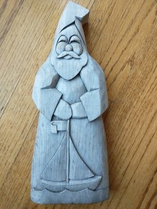 Figura de pared náutica de 12" firmada arte popular Thorsen con barco tallada a mano de Papá Noel de colección