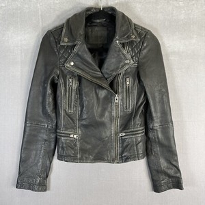 Chaqueta de Cuero AllSaints Motociclista para Mujer 0 Negra Carga Moto Oveja Bolsillos con Cremallera Completa