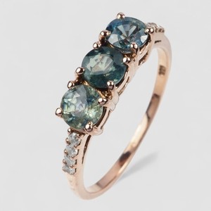 Lujosos anillos de tres piedras de zafiro verde azul hechos a mano de plata de ley 925