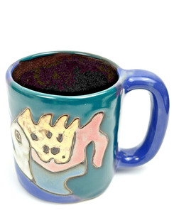 Taza de café de cerámica de pescado en relieve firmada por artista Mara de México abstracta pesada 30,16 EUR