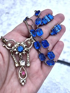 Antiguo conjunto victoriano bohemio de puntas de vidrio rojo collar Tombac - pieza patrimonial 143,13 EUR