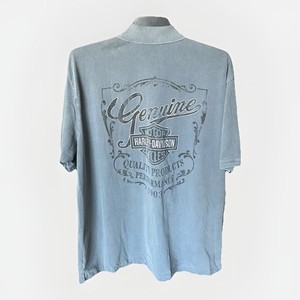 Camisa Polo Harley-Davidson Azul Gráfico Para Hombre Motociclista Envejecido Informal XL