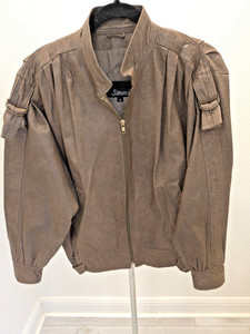 Chaqueta Simoné 6 Pequeña Vintage Cuero Serpiente/Reptil Bolsillos con Cremallera Forrada Marrón