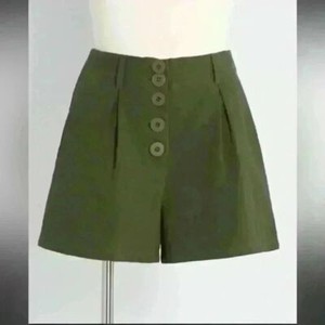 Nuevo con etiquetas Pantalones Cortos Informales Modcloth Para Mujer Verde Botón Lino Mosca Tiro Alto Plisados Talla 2 13,14 EUR