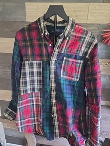 Camisa Polo Ralph Lauren Oxford Divertida Para Hombres Mediana Roja Verde Cuadros Retazos