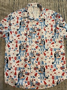 Camisa Azul Disney Abotonada Tropical Para Hombre Grande Azul 4 De Julio EE. UU.