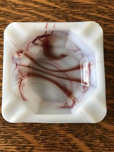 "Cenicero antiguo vintage de ágata Akro rojo y blanco cuadrado de sangre de buey pequeño 2 3/4""" 64,67 EUR
