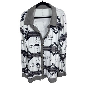 Cárdigan Chaqueta Estampado Azteca Con Botones Gris Blanco Suroeste Western Shacket 4XL