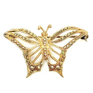 Broche prendedor vintage diseño mariposa piedras marcasita plata esterlina 800 u733