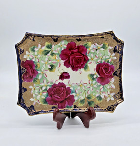 Antigua bandeja/placa floral dorada japonesa Moriage - marca de media luna, c.1890-1930