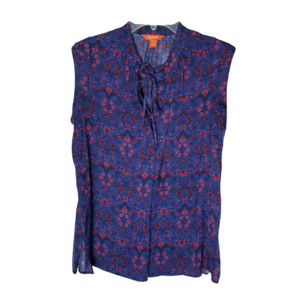 Camisa Joe Fresh Mujer Talla Pequeña Azul Floral Sin Mangas Corbata Frontal