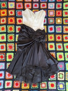 Vestido De Colección Tadashi Shoji Blanco y Negro Lentejuelas Años 80 Cintura Caída Talla 8/S 59,61 EUR