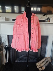 Chaqueta Jean Mujer Pequeña Coral Gran Tamaño Desgastada Boho Dobladillo Crudo Moda