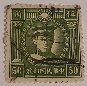 CHINE RARO TIMBRE DR Sun Yat Sen, Surimpression rouge 50 sur 20