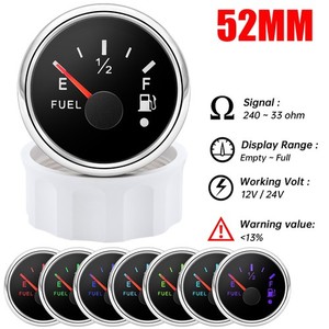 2" 52MM Universal Gas Fuel Level Gauge 240-33 ohms Analogue LED Car Marine Boat