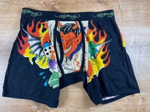 Calzoncillos boxer Y2K Ed Hardy tatuaje diseño gráfico NOS Devil Joker dados negros