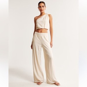 Conjunto de Pantalón Abercrombie & Fitch Arrugado Texturizado Un Hombro Nudo Crema Talla XS