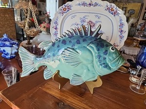 Peces colgantes de pared de cerámica esmaltada azul de 18"