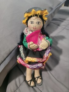 Muñeca de tela vintage de arte popular peruano de 8" mujer llevando niño hecha a mano 12,13 EUR17,33 EUR