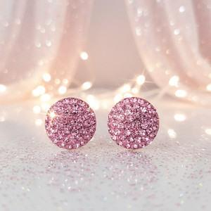 Aretes de plata esterlina rosa pavé circonita cúpula redonda cristal brillante joyería
