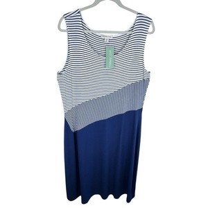 Vestido sin mangas Coldwater Creek nuevo con etiquetas azul marino blanco a rayas cuello redondo elástico midi PXL 55,32 EUR